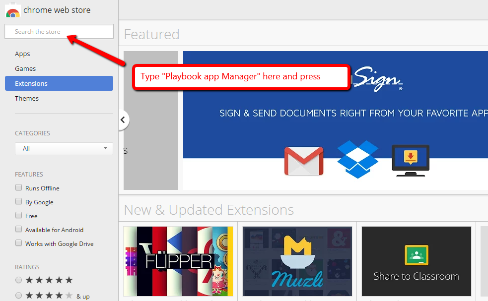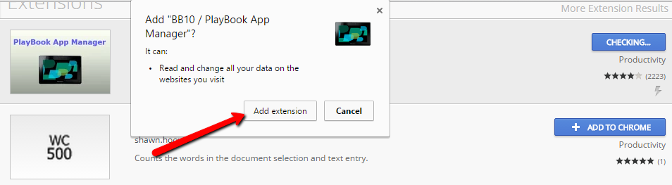 Step 2: Type "Playbook app Manager" and search for the extension. The search result will come up with the below extension. Click on the "Add to Chrome" button on the right.