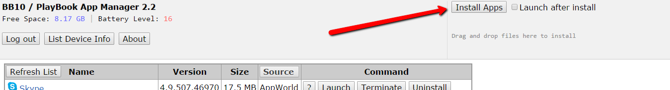 Step 10: Click on the install apps option and browser the bar file and it will install the app on your device.
