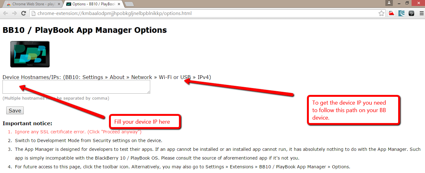 Note: In order to get the IPv4 please go to Settings>About>Network>IPv 4 address option in your BB device.